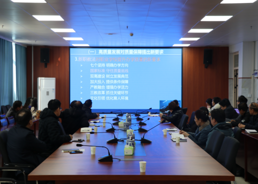 3月8日上午,我校组织集中观看“以合格评估方案为引领,助推职业技术大学高质量发展”为主题的线上讲座。主讲人为中国职教学会学术委员会委员、质量保障与评估专家指导委员会执行主任李志宏教授。我校党委副书记司元亨、常务副校长马金岭、副校长许德宽、党委副书记夏永亮、副校长师鹏、评估处处长徐忠根以及各院部院长(主任)、副院长、处室主要负责人、教研室主任等同志参加了学习。