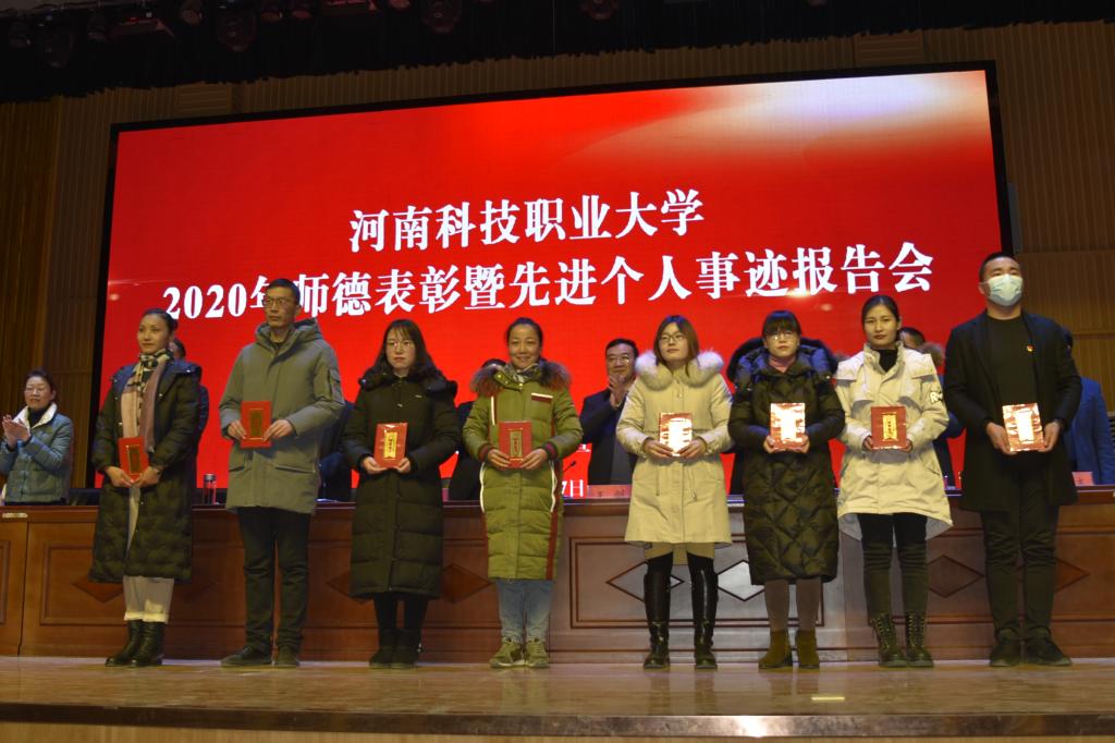 会上,党委副书记夏永亮宣读了《河南科技职业大学关于表彰2020年度师德师风先进个人的决定》。师德先进个人代表闫晓梅、戚麟麟、沈萌萌依次上台与广大师生分享了他们的感人事迹。