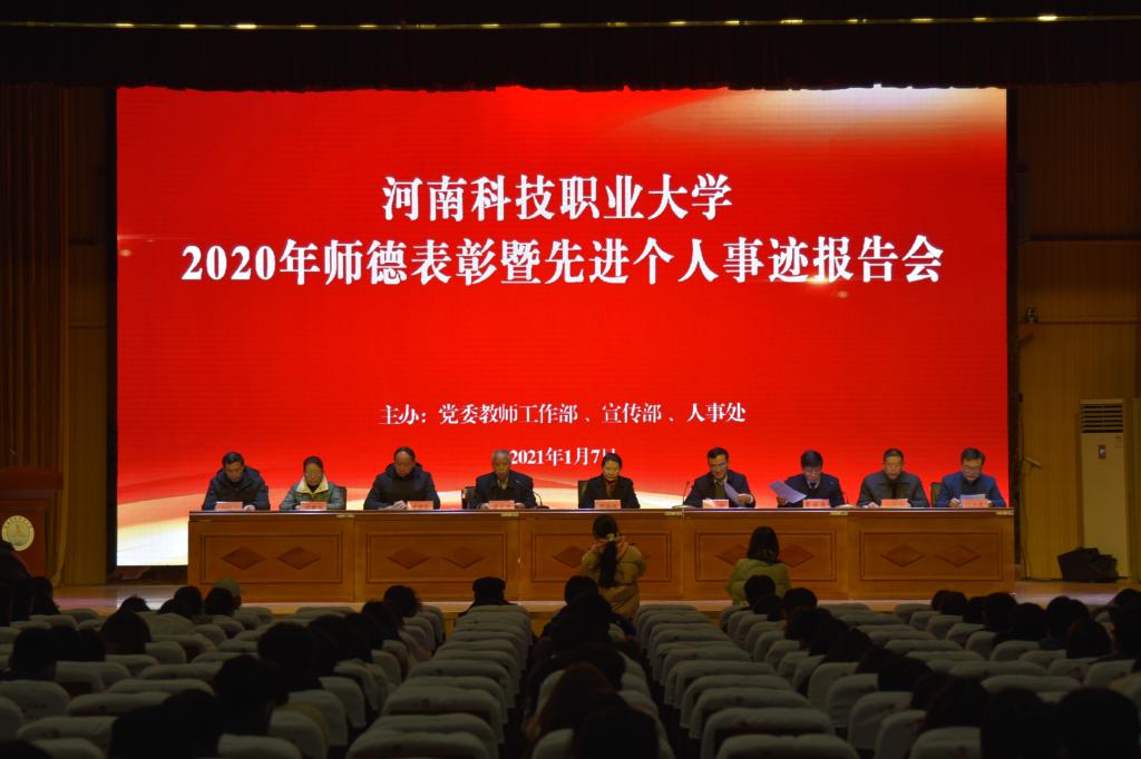 为深入学习贯彻党的十九届五中全会精神,进一步加强学校师德师风建设,1月7日下午,我校在图书馆三楼报告厅隆重举行2020年度师德表彰暨先进个人事迹报告会。周口市政协副主席、我校理事长李海燕,校党委书记王剑,党建指导员司元亨,党委副书记夏永亮,纪委书记凌现庄,党委学工部部长尚德山,财务处处长赵艳杰,组织部部长门立志,党办主任王西之在主席台就座。全校师生代表500余人参加报告会。