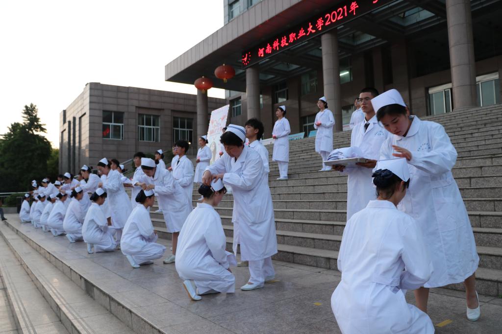 为纪念5·12国际护士节,传承和弘扬南丁格尔精神,增强医学院全体师生的责任感、使命感,充分展示医学院护理专业队伍的精神风貌和职业风范,激励大家学习先进、赶超先进。5月8日下午,我校在综合楼前广场举行河南科技职业大学2021年“5·12国际护士节”暨授帽仪式。周口市政协副主席、我校理事长李海燕,校党委书记王剑,党建指导员司元亨,副校长许德宽,党委副书记夏永亮,纪委书记凌现庄,副校长兼医学院院长艾旭光等出席。医学院全院师生参加本次活动。