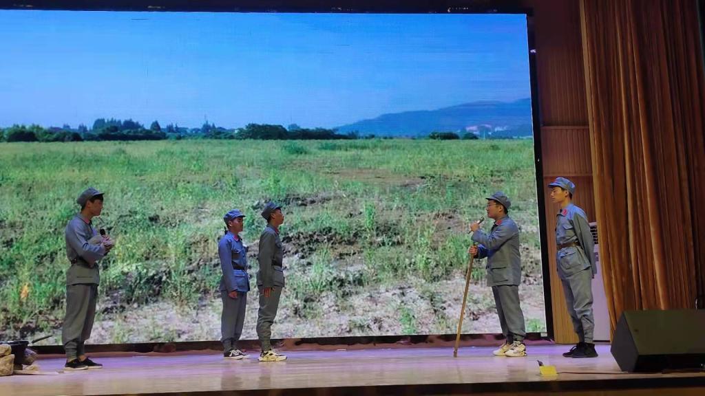 本活动是在校党委领导和马克思主义学院全体教师的共同努力下,推荐冯春光老师直接参与授课,在我校图书馆三楼演播厅进行录制。活动伊始,冯老师讲述《长征》历史背景,河科青马社学子用舞台情景再现的形式演绎了《长征大会师》片段,再现二万五千里长征途中那感人瞬间,弘扬长征精神,传承红色基因,让党史学习教育深度融入思政课教学,提高思政课教学的温度、高度、深度和力度。