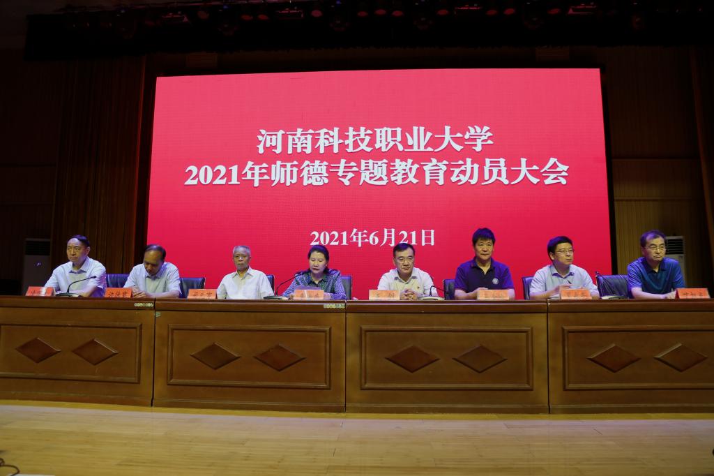 6月21日上午,我校在图书馆三楼报告厅召开师德专题教育动员大会。周口市政协副主席、我校理事长李海燕,校党委书记王剑,党建指导员司元亨,常务副校长马金岭,副校长许德宽,党委副书记夏永亮,纪委书记凌现庄,副校长艾旭光等出席会议。全体教师参加了会议。