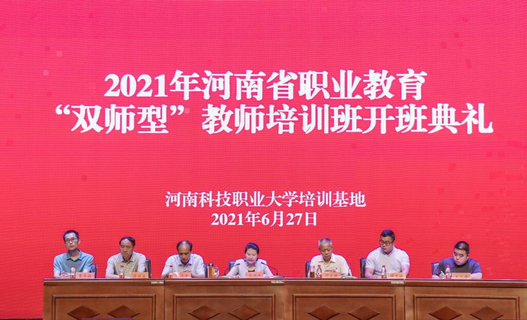 6月27日,我校在图书馆三楼报告厅召开2021年河南省职业教育“双师型”教师培训班开班典礼。周口市政协副主席、我校理事长李海燕,党建指导员司元亨,副校长许德宽,纪委书记凌现庄,上海卡路里教育集团董事长谢文锋出席会议,会议由司元亨主持。