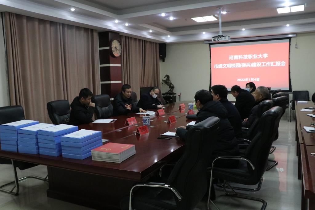 2022年1月4日下午,由周口职业技术学院附属医院总支部书记孙先锋任组长的市文明校园(标兵)检查组一行3人莅临我校,对我校市文明校园(标兵)创建工作进行检查指导。建设工作汇报会在学校综合楼九楼会议室召开。我校党委副书记司元亨、党委副书记夏永亮、纪委书记凌现庄、办公室主任王西之、党委宣传部部长刘晓娜及各相关职能处室负责同志参加汇报会。