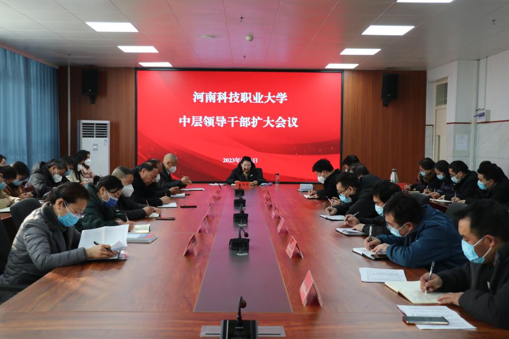 2月3日,我校在新教学中心八楼会议室召开学校中层领导干部扩大会议。校领导李海燕、司元亨、马金岭、许德宽、夏永亮、凌现庄、艾旭光出席会议。全校中层及以上领导干部参加会议。