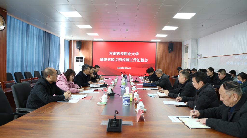 2023年2月24日上午,以河南省委宣传部精神文明建设三处二级调研员闰文斌为组长,信阳师范学院党委宣传部副部长高国栋、河南中医药大学党委宣传部精神文明建设科科长蔡源源、周口市委宣传部思想道德建设科科长吴强、周口市委宣传部精神文明建设协调科科长任宏阳为成员的省级文明校园检查组,莅临我校开展省级文明校园检查考评工作。我校党委副书记司元亨、副校长许德宽、副书记夏永亮、党委学工部长尚德山、党委组织部长门立志、党委统战部长刘春华、党委宣传部副部长孔建富出席会议。各学院(部)党总支书记、各相关处室负责人参加会议。