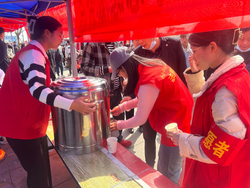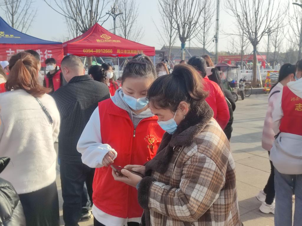 周口市淮阳区太昊陵庙会,是载入吉尼斯的世界上最大的庙会,平均每天有40万人前来旅游。来自河南科技职业大学的60名志愿者分布在太昊陵广场上不同点位,为现场为游客和市民群众提供太昊陵景区宣传讲解、购票及游览路线咨询、维护秩序、劝导游客、安全宣传、公共清扫等一系列志愿服务,以实际行动践行雷锋精神、传播志愿服务理念。