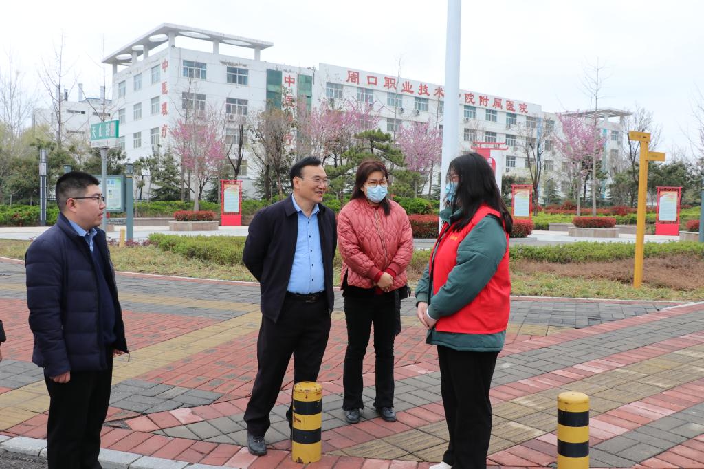 王剑一行实地察看了我校分包路段和网格化分包社区华耀城办事处创城工作开展情况,听取相关汇报,现场提出整改督导意见,并慰问我校志愿者。王剑强调,今年是周口市创建全国文明城市决胜之年,作为周口市的一分子,一定要主动作为,勇于担当,切实用行动推动全国文明城市创建工作。