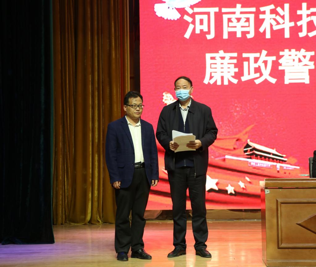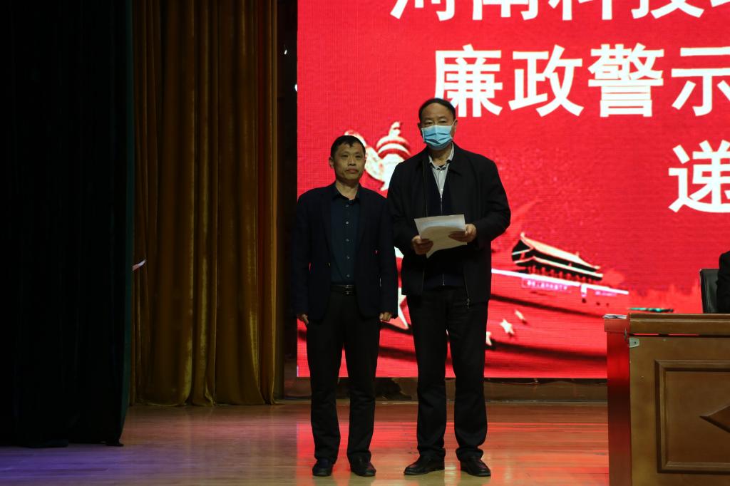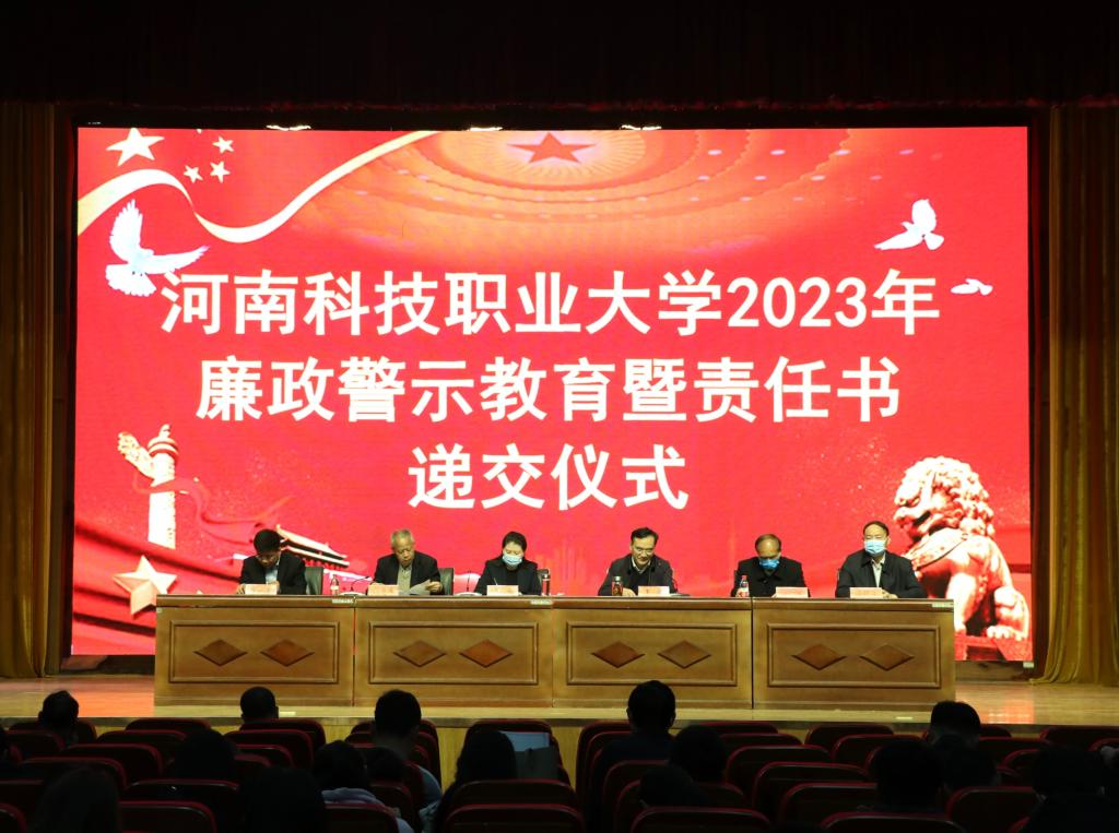 为深入学习贯彻习近平总书记关于全面从严治党重要论述,贯彻推进清廉学校建设党风清正、政风清明、校风清朗、教风清淳、学风清新“五大工程”,以案为鉴、以案示警、以案明纪,进一步增强广大党员领导干部廉洁自律意识和防腐拒变能力,2023年3月30日下午3点,我校在图书馆三楼报告厅召开河南科技职业大学2023年廉政警示教育暨责任书递交仪式。学校理事长、校长李海燕出席会议,学校全体教职工参加会议,会议由校党委书记王剑主持。