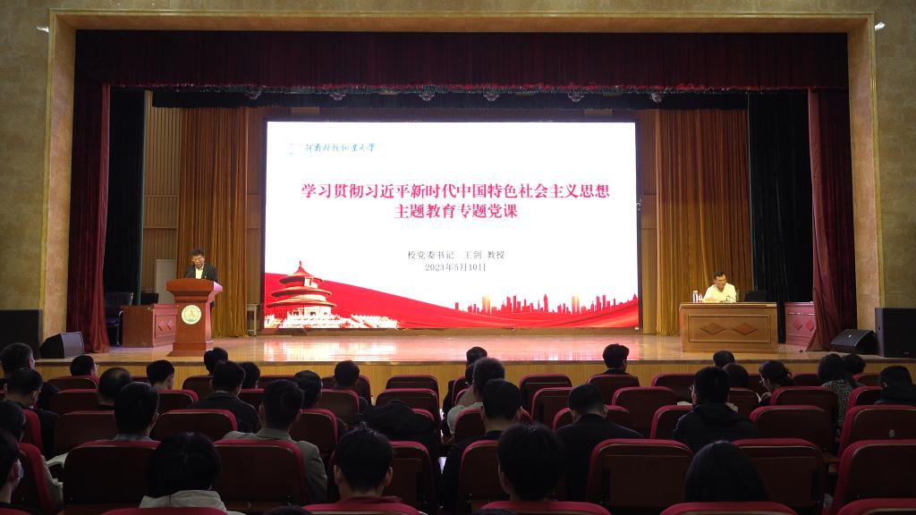 5月10日上午,我校党委书记王剑教授在学校图书馆三楼报告厅以《学习新思想,启航新征程,奋力谱写学校事业高质量发展新篇章》为题讲授学习贯彻习近平新时代中国特色社会主义思想主题教育专题党课。中共河南省委教育工委、省教育厅党组主题教育第一巡回指导组组长河南测绘职业学院原党委书记孙新卿教授,指导组成员河南应用技术职业学院人事处副处长李明同志到场指导。校党政领导班子成员、全体中层干部和师生党员代表参加学习。校党委副书记夏永亮主持专题党课。