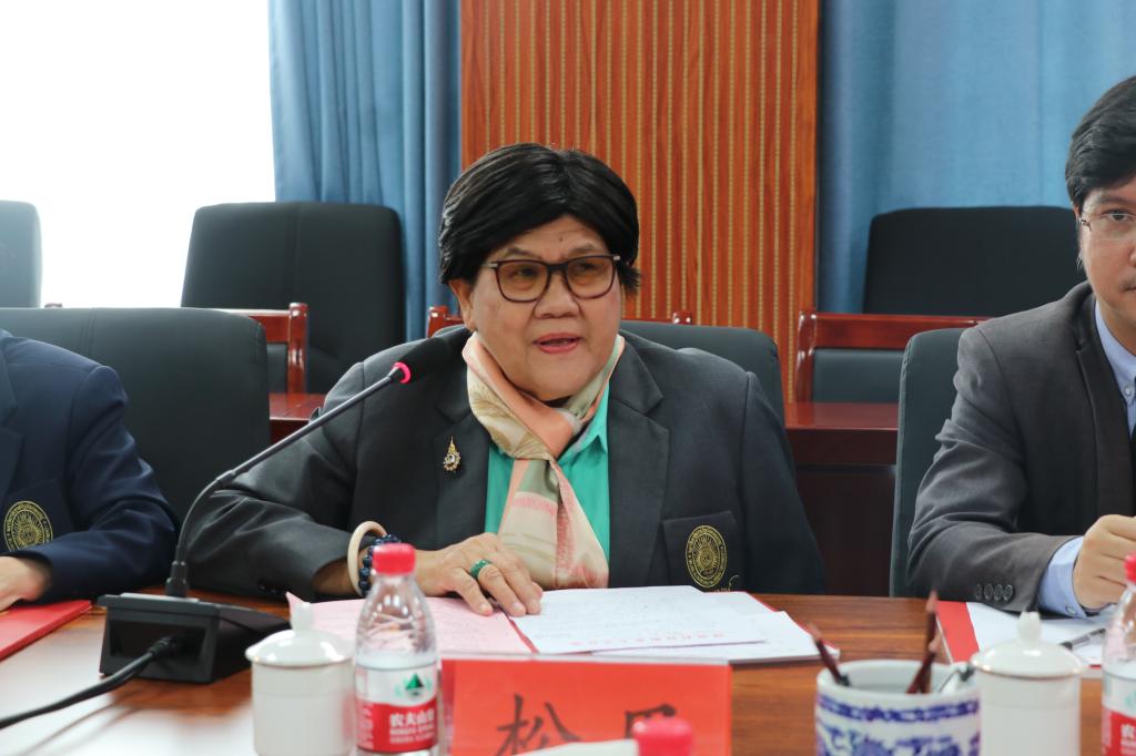 座谈会上,李海燕代表学校对泰国瓦拉亚隆功皇家大学的来访表示热烈欢迎。双方介绍了各自学校在建设发展、学科专业、人才培养、学术研究等方面的基本情况,共同探讨了两校在师生交流、联合培养等方面开展合作的可行性方案。
