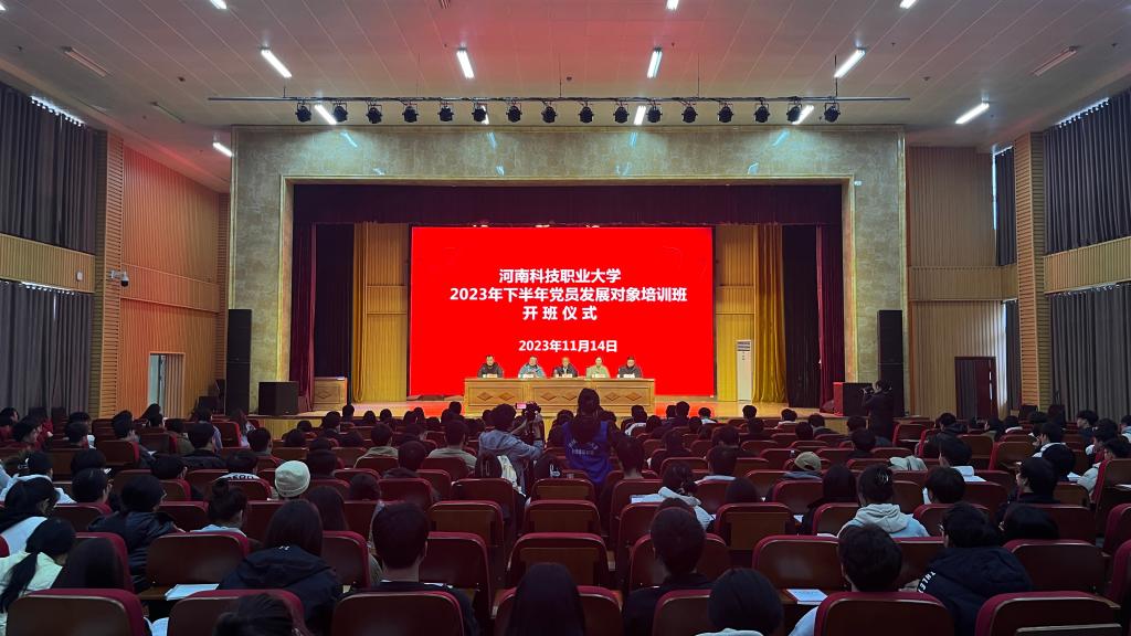 11月14日下午,我校在图书馆三楼报告厅举行2023年下半年党员发展对象培训班开班仪式,校党委副书记司元亨,党委委员、校工会主席崔海花,党委组织部长门立志,统战部长刘春华,组织部副部长刘永杰在主席台就坐。开班仪式由门立志主持。