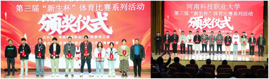 11月21日下午,我校在图书馆三楼报告厅举行了第三届“新生杯”体育比赛系列活动颁奖仪式。校党委委员、工会主席崔海花,校党委委员、学工部长尚德山,组织部长门立志,校办公室主任宋广峰,校保卫处长郭广才,宣传部副部长孔建富,医学院党总支书记方园,公共基础教学部党支部书记乔洪辉出席颁奖仪式。