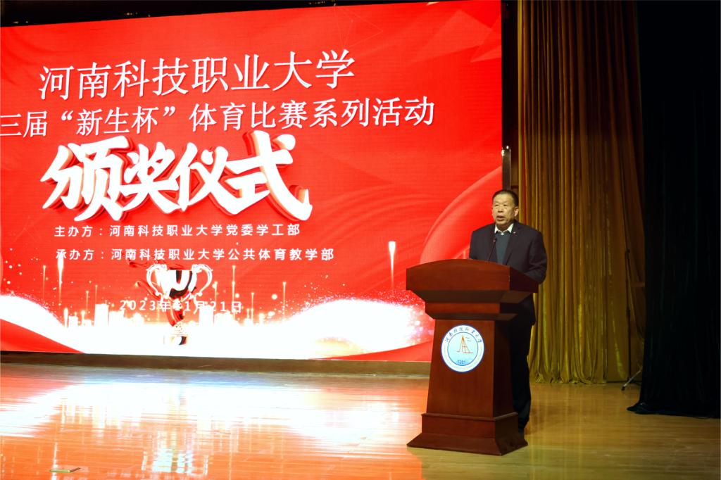 尚德山表示,这次比赛活动中,各路健儿不畏强手,团结协助,勇于拼搏,发扬“友谊第一、比赛第二”的运动精神,赛出了成绩,比出了风格,充分展现了我校大学生良好的精神风貌,为创建文明校园增添了一道靓丽的风景。随后,他宣读了《关于表彰2023年第三届“新生杯”体育比赛系列活动优胜代表队和个人决定》。他强调,希望受到表彰的参赛队和个人,不骄不躁,再接再厉,精练球技,再创佳绩,为推动我校体育事业健康发展继续努力,为学校精神文明双丰收做出自己更大的贡献。