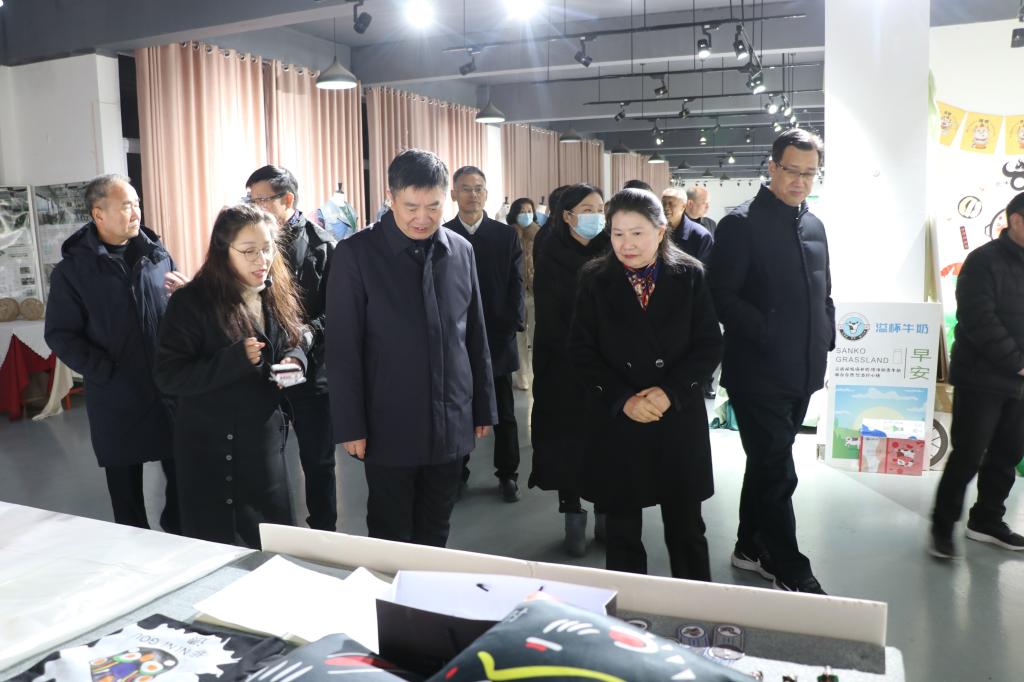 余本海一行实地考察了我校图书馆、机电工程学院工业机器人实训室、美术与艺术学院服装设计实训室,参观了校史馆、新校区建设规划项目展、我校国防教育宣传基地,并且观看了我校的发展纪实片。
