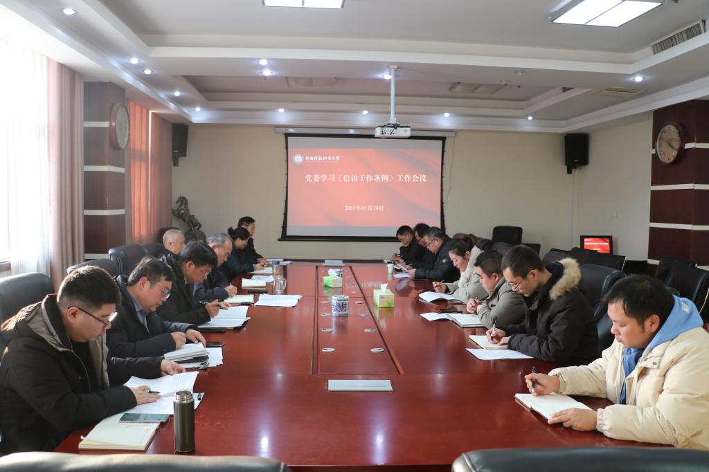 11月30日,我校在综合楼9楼会议室召开党委理论学习中心组专题学习《信访工作条例》会议,会议由校党委书记苏宇主持。