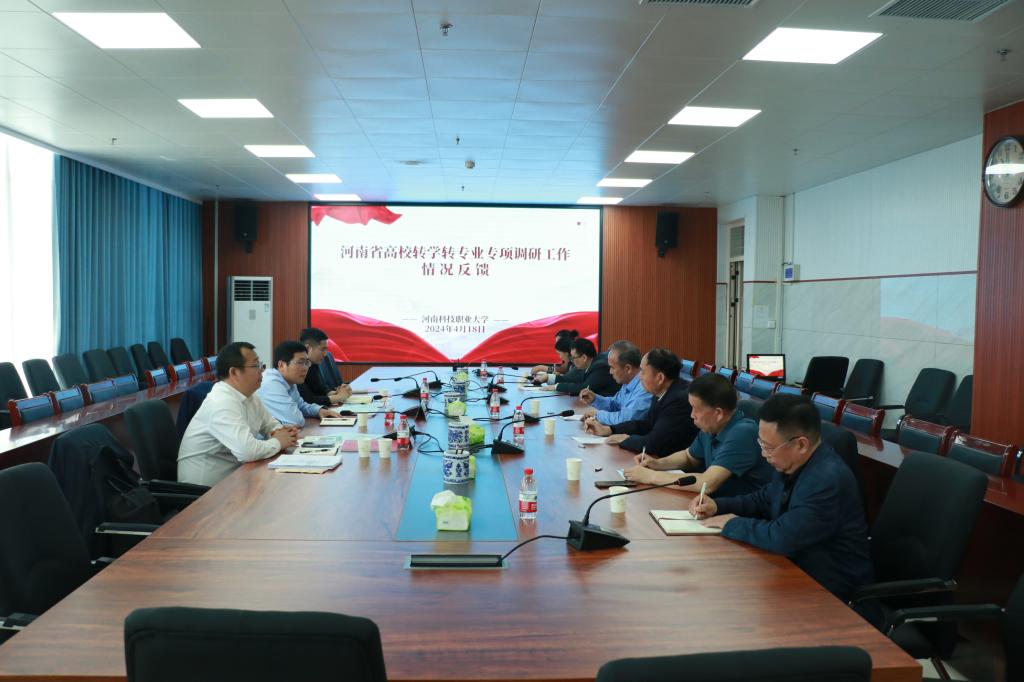 4月18日,以安阳师范学院学工部部长、学生处处长赵江涛为组长,河南工业职业技术学院教务处处长杜恒,信阳师范大学教务处学籍科科长刘锦涛为成员的河南省高校转学转专业专项调研组一行三人莅临我校检查指导工作。校领导李海燕、苏宇、凌现庄、师鹏、崔海花出席会议。各学院负责学籍工作的院领导、学管办主任、学籍管理员、辅导员代表以及学生处全体工作人员参加了会议。会议由校党委书记苏宇主持。