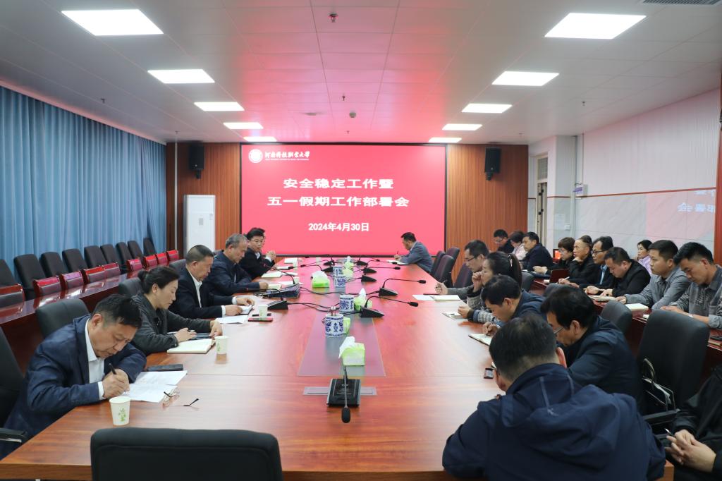 4月30日,我校在新综合教学中心召开安全稳定工作暨五一假期工作部署会。校党委书记苏宇,党委副书记夏永亮,校党委委员、工会主席崔海花出席会议,校党委委员、学工部长尚徳山,组织部长门立志,统战部长刘春华,校委会委员、校办主任宋广锋,保卫处长郭广才,各院(部)、处室负责人参加会议。会议由苏宇主持。