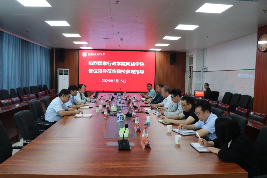 5月15日,国家教育行政学院中国教育干部网络学院李朝歌、赵玲、马征,网院运维单位沈悦一行4人到我校参观交流。校党委书记苏宇,常务副校长马金岭,纪委书记凌现庄,副校长师鹏,党委委员、学工部长尚德山,党委委员、组织部长门立志,校办公室主任宋广锋,人事处处长孟丽平全程陪同。