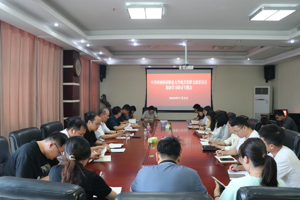 7月2日,我校机关党群支部在综合楼9楼会议室召开集体学习研讨专题会。校党委书记苏宇,党委委员、组织部部长门立志出席会议。机关党群支部书记苏霄以及机关党群支部全体党员同志参加会议。会议由苏霄主持。
