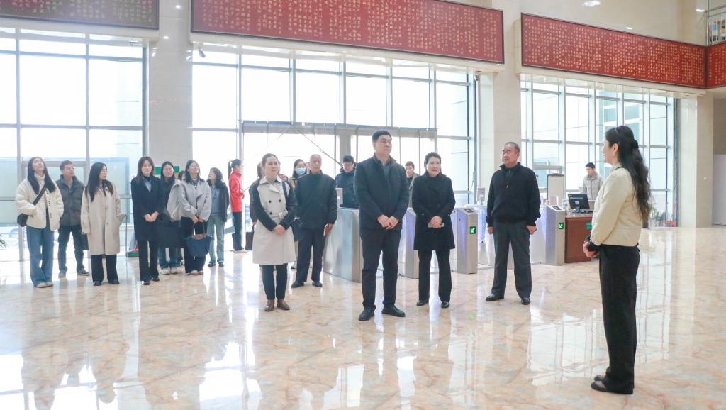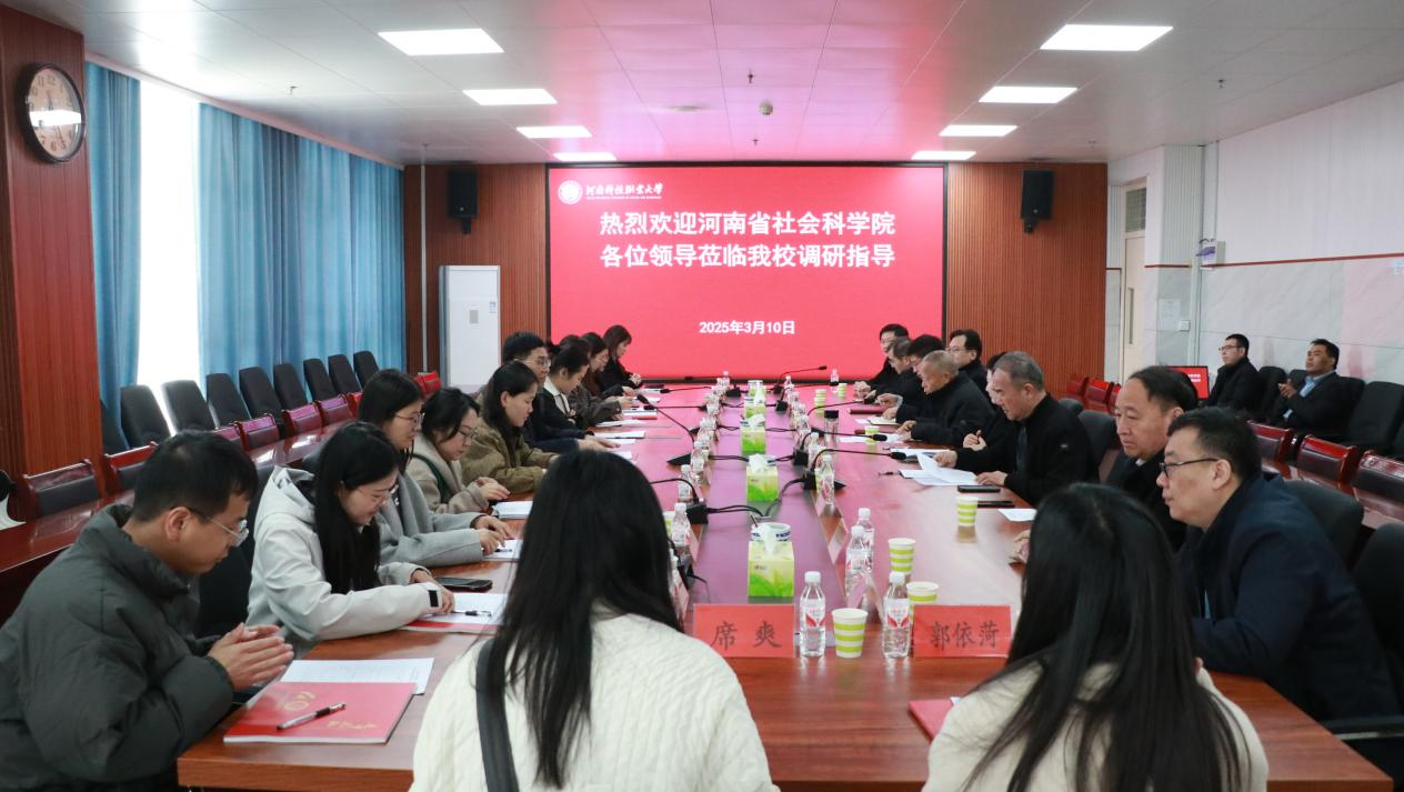 3 月 7 日上午,河南省社会科学院人口与社会发展研究所所长、研究员陈东辉,省社科院研究生院负责人、副研究员李孟舜一行13 人莅临我校聚焦职业教育高质量发展进行专题调研。我校理事长、校长李海燕、校党委书记苏宇等领导班子成员及相关部门负责人全程陪同调研并参加座谈会。