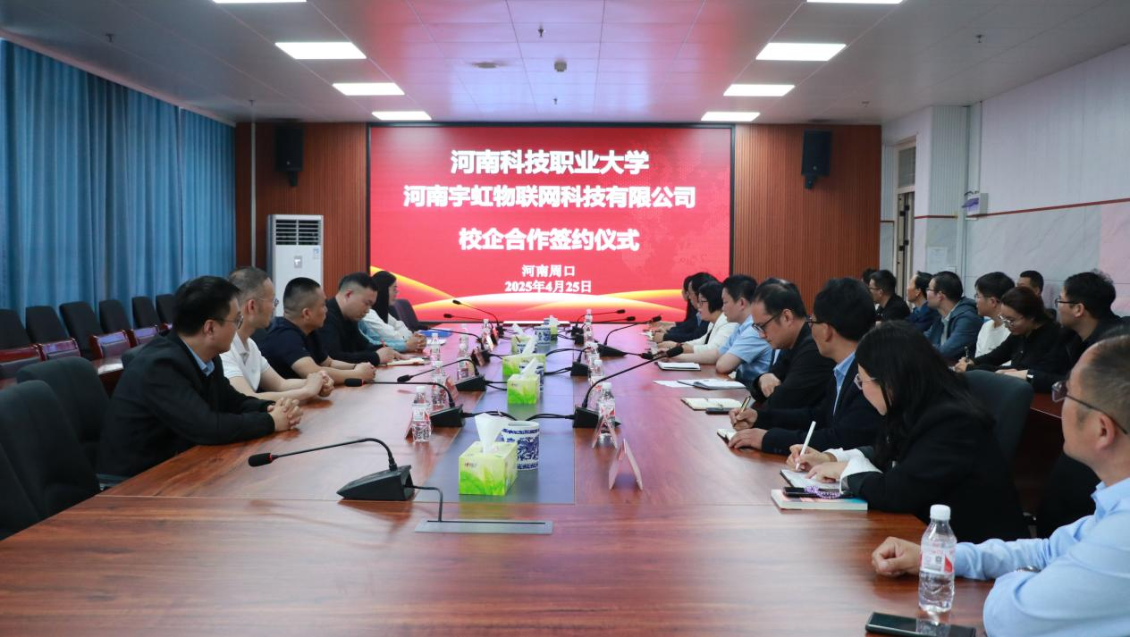 会上,师鹏深入阐述了校企合作对于推动教育链、人才链与产业链、创新链有机衔接的重要意义,表达了学校对深化产教融合的坚定决心。他强调,学校将全力支持此次合作,期望通过与河南宇虹科技物联网有限公司的携手,为学生成长和专业发展注入新动能,培养出更多适应市场需求的优秀人才。