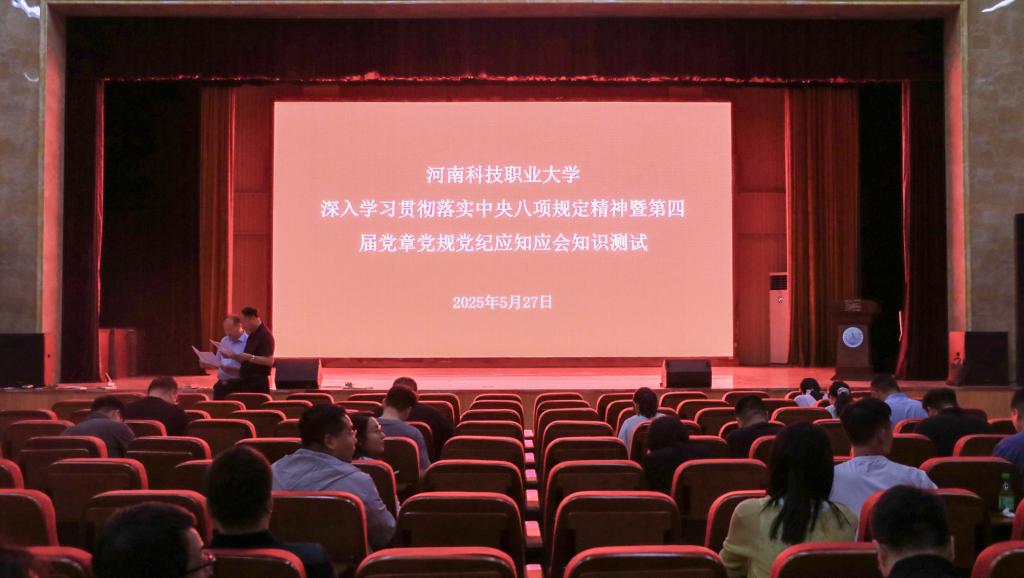 为深入学习贯彻党的二十大和二十届中央纪委四次全会精神,践行全国教育大会精神要求,进一步强化党员师生对党章党规党纪的学习理解和贯彻落实,巩固深化党纪学习教育成果,结合我校《关于在全体党员中开展深入贯彻中央八项规定精神学习教育的工作方案》要求,5月27日下午,我校在图书馆三楼报告厅成功举办了第四届党章党规党纪应知应会知识测试活动,各基层党组织书记、副书记、纪检委员,及各教学院教师党员代表、学生党员代表共101人参加本次测试。校纪委书记凌现庄现场指导。