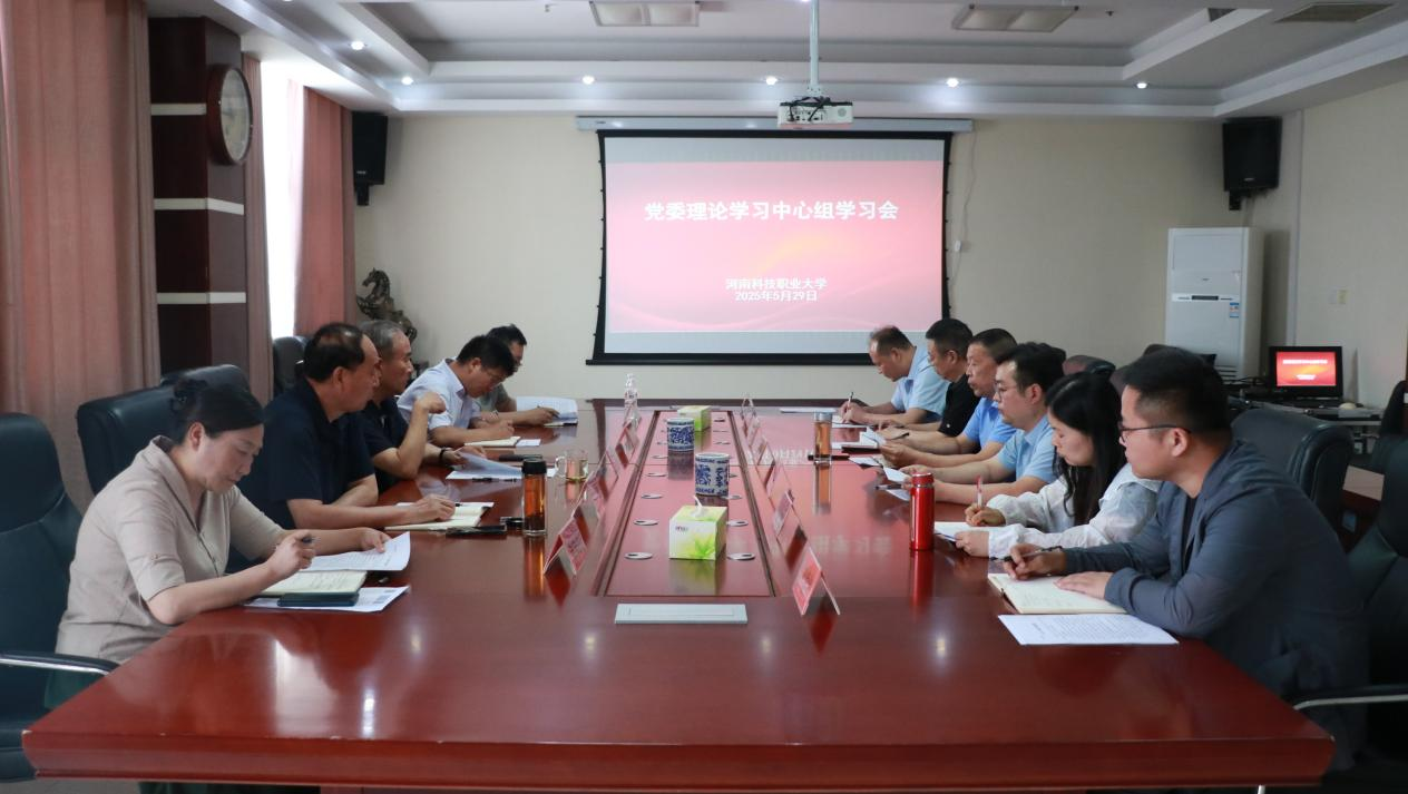 5月29日下午,我校在综合楼 9 楼会议室召开党委理论学习中心组专题学习会议。全体党委理论学习中心组成员参加会议,会议由校党委书记苏宇主持。