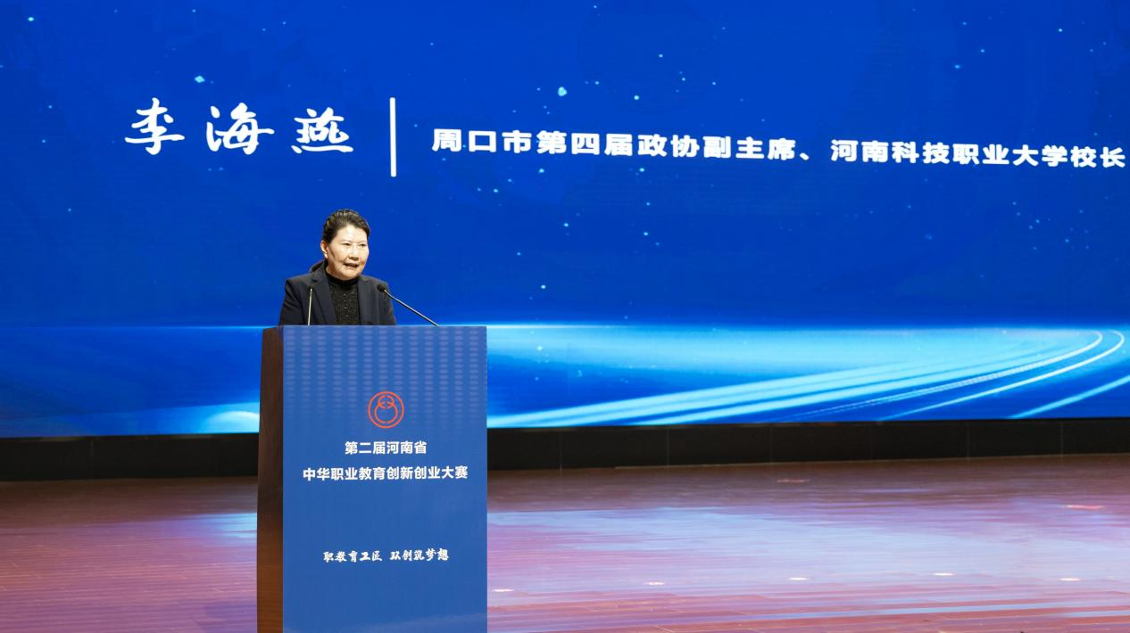 闭幕式上,周口市第四届政协副主席、我校校长李海燕作为承办方代表致辞,分享了学校44年深耕职业教育、培养18万多名技术技能人才的办学成果。她表示,学校将以此次大赛为契机,持续强化创新创业人才培养,加强与兄弟院校的交流合作,为河南职业教育发展贡献更大力量。