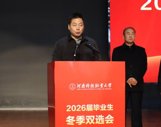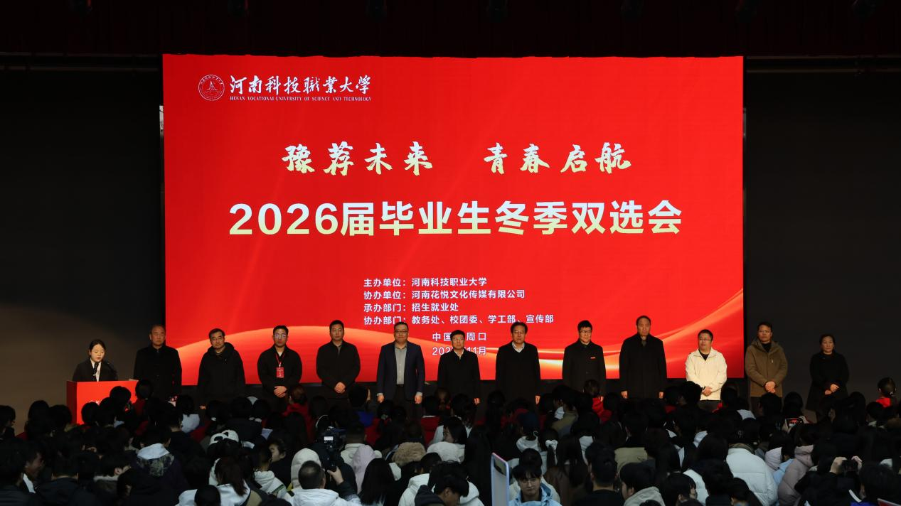 11月18日,我校在文体中心一楼学术报告厅举行2026届毕业生冬季双选会开幕式。我校党委副书记苏宇、执行校长冯启高、常务副校长马金岭、党委副书记夏永亮、纪委书记凌现庄、副校长师鹏、工会主席崔海花、副校长艾旭光、高有堂出席大会。相关职能处室负责人、各院(部)书记、院长参加了开幕式。开幕式由苏宇主持。