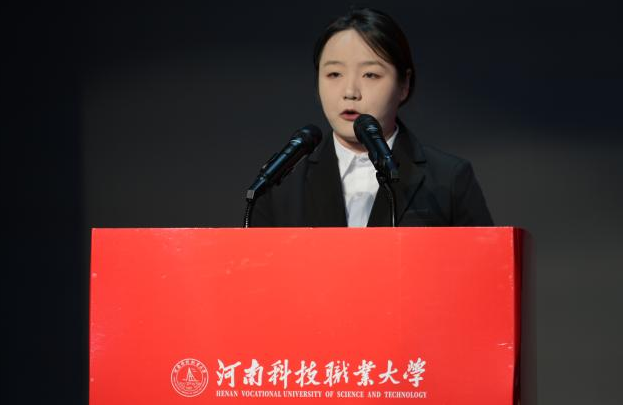 机电工程学院2026届毕业生彭研歌和周口耕德电子有限公司人力资源部经理刘浩分别作为学生代表与企业代表在会上进行发言。