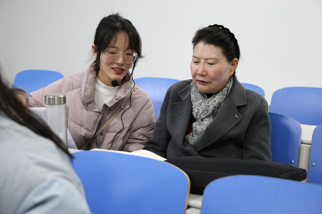 听课过程中,李海燕凝神专注,详细记录了教学内容、教学方法及课堂互动情况,密切关注学生的学习状态与反馈。