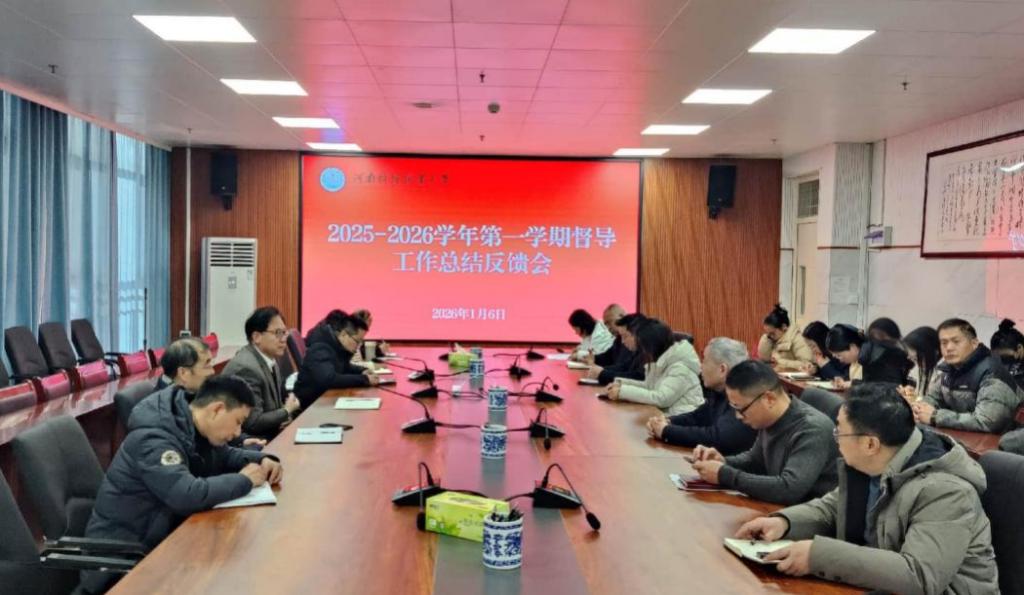 为全面总结本学期教学督导工作开展情况,反馈交流教学中存在问题,形成诊断和改进闭环,持续提升教学质量,1月6日,我校在综合教学中心832会议室召开了2025-2026学年第一学期教学督导工作总结反馈会。我校执行校长冯启高、教务处处长陈少军、教学质量监控与评估处处长徐忠根出席会议,全体校级督导员、各院部督导组组长及教学质量监控与评估处工作人员参加会议,会议由徐忠根主持。