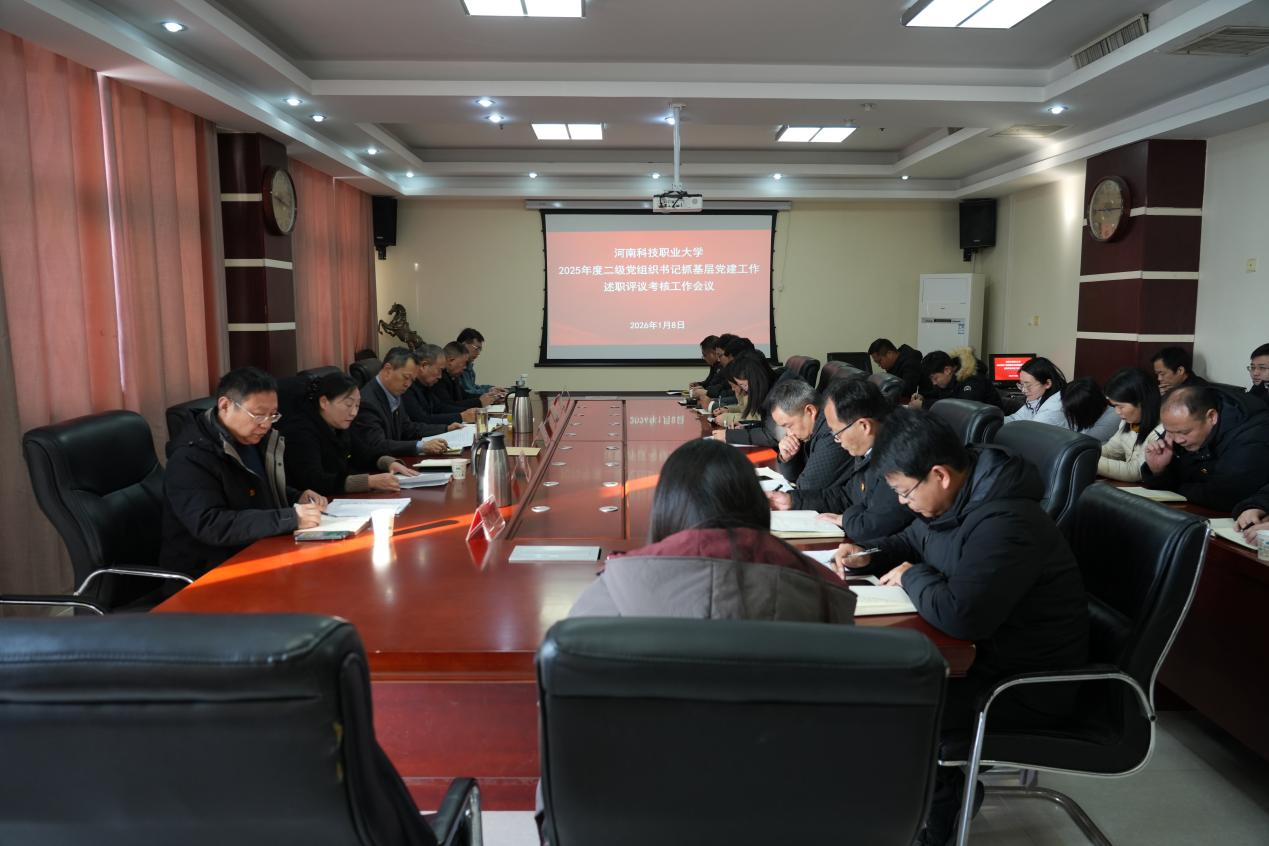 1月8日,我校党委在综合楼9楼会议室召开2025年度二级党组织书记抓基层党建工作述职评议考核会议。校党委书记张林,党委常务副书记苏宇,党委委员、工会主席崔海花,党委委员、学工部部长尚德山,党委委员、组织部部长门立志,党委委员、统战部部长刘春华出席会议,党委各职能部门负责同志,各二级党组织书记、副书记及党员代表参加会议。会议由张林主持。