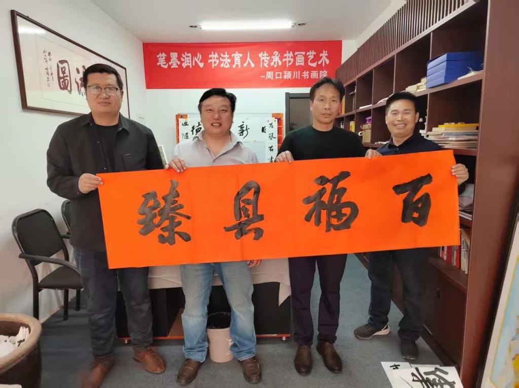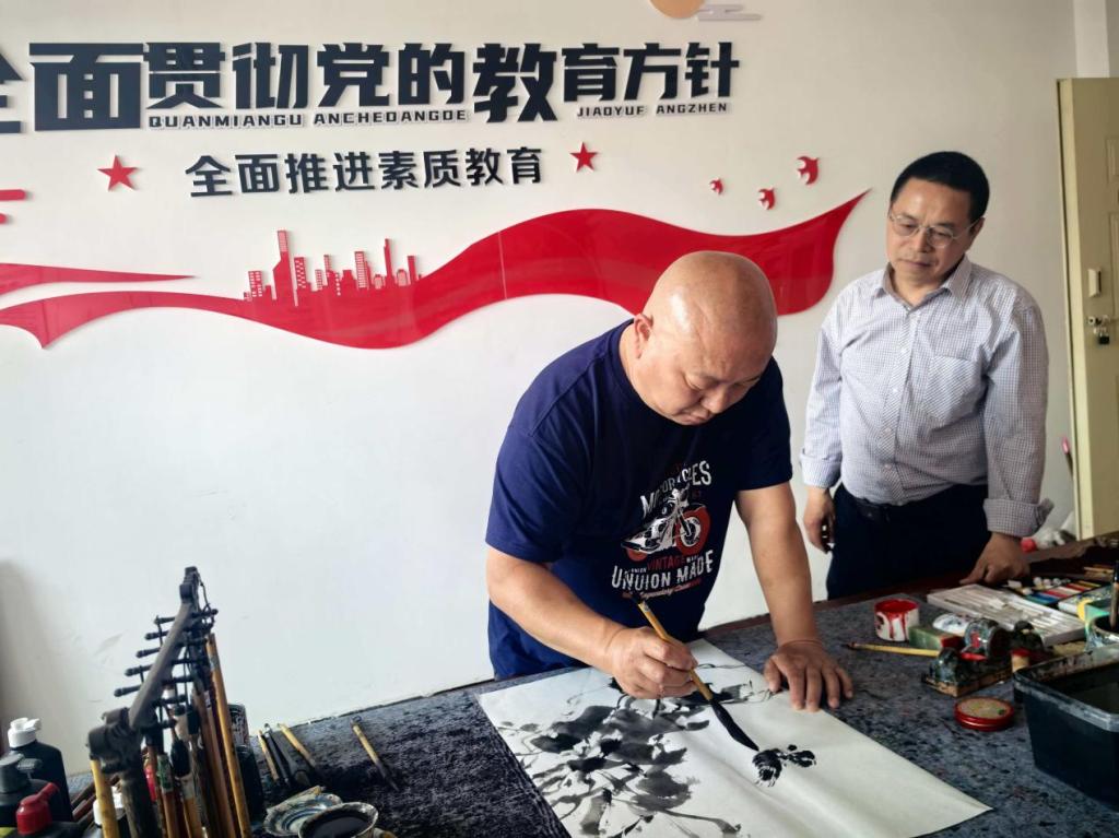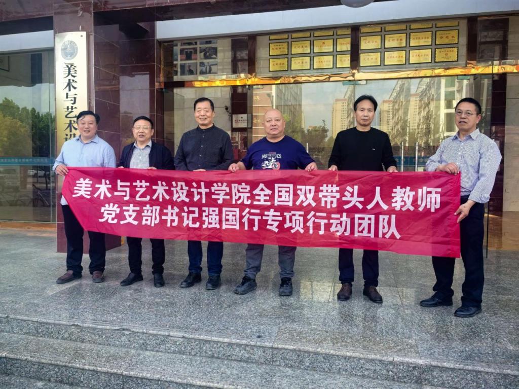 为持续加强我校美术与艺术设计学院全国“双带头人”教师党支部书记“强国行”专项行动团队建设,充分发挥高校基层党组织战斗堡垒作用和党员先锋模范作用,推动党建工作与美术专业深度融合,近日,我校全国“双带头人”教师党支部书记强国行团队开展“党建+美育”专项交流活动。周口市美协主席师行坤,周口市颍川书画院张成军、王明涛,周口职业技术学院夏雁应邀莅临我院参加交流活动。美术与艺术设计学院党委书记刘春华、院长王西军出席交流活动,教职工党支部书记汪训、党员教师吴衡全程陪同。