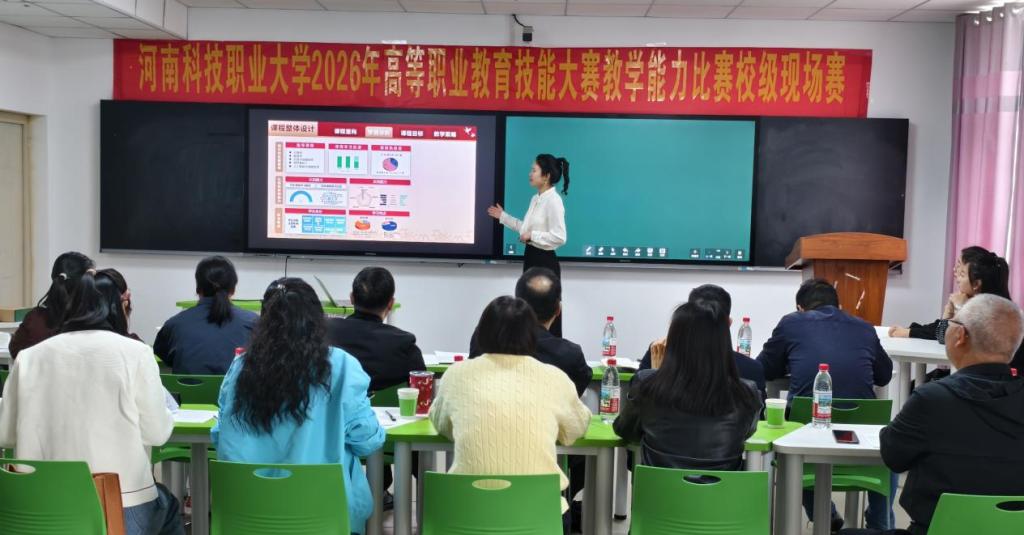 为深入贯彻立德树人根本任务,深化职业教育“三教”改革,推进“岗课赛证”综合育人模式落地,4月21日至22日,学校2026年高等职业教育教学能力大赛校级决赛在综合楼501智慧教室成功举办。