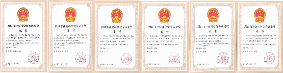 我校6项2021-2022年度周口市社会科学优秀成果获奖(其中一等奖1项,二等奖1项)