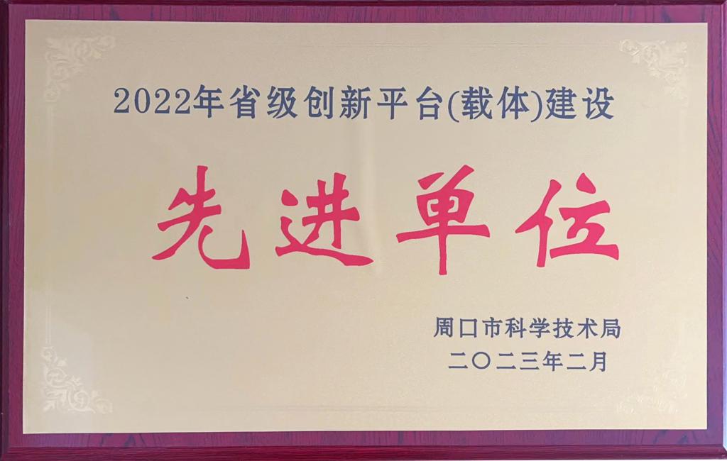 2023年2月,我校被周口市科技局授予“2022年省级创新平台(载体)建设先进单位”。