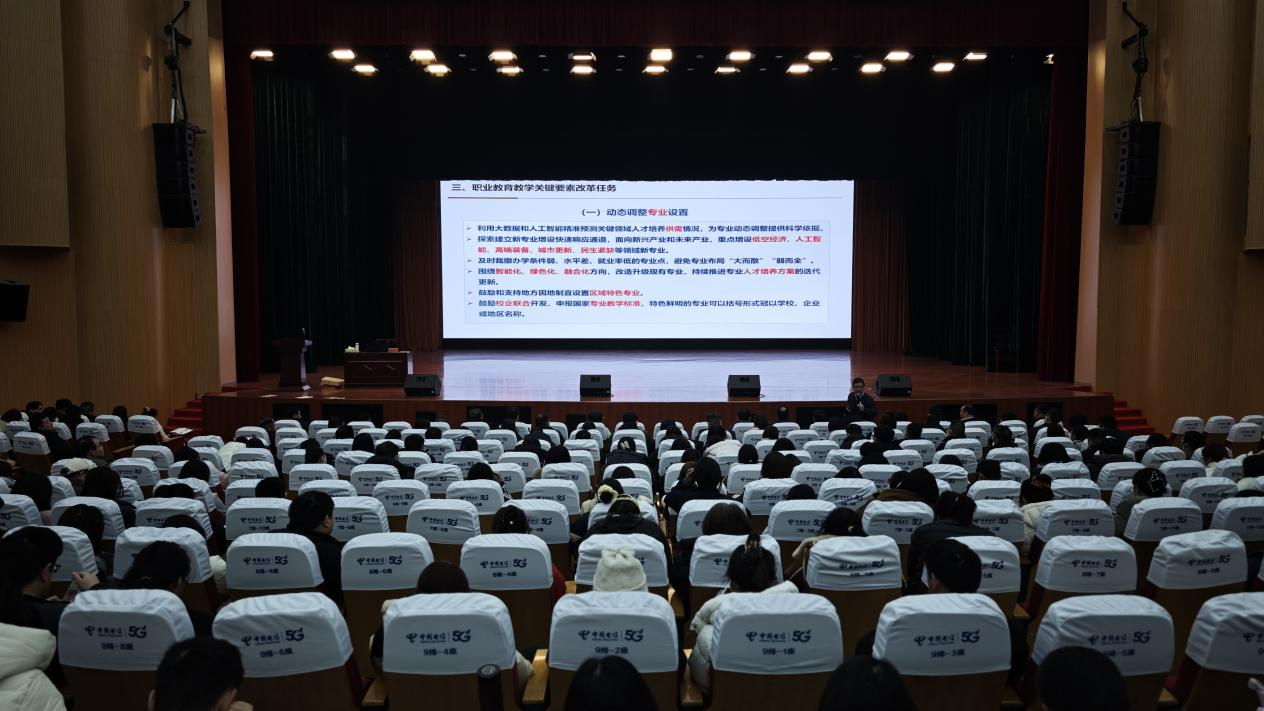 3月6日上午,我校在文体中心三楼报告厅举办职业教育专题分享暨研讨交流会,特邀浙江金融职业学院高等职业教育发展研究中心常务副主任陈正江研究员主讲,全体教职工参会,会议由执行校长冯启高主持。