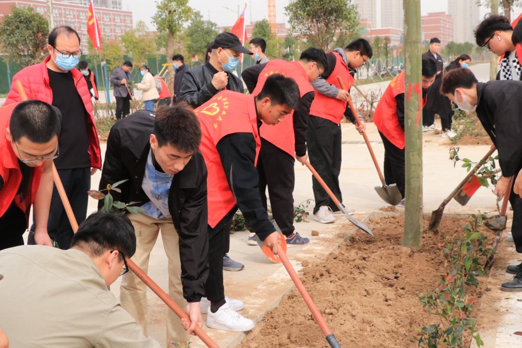 在夏永亮书记与各学院党总支(直属党支部)书记的带领下,党员干部们拿起铁锹,在划定的点位上挖坑种树。全校党员干部充分发扬不怕苦、不怕累精神,大家三五人一组活力满满,干劲十足,各负其责,分工明确,相互协作,认真完成运苗、扶正、填土、踩实等每一道植树工序。党员干部们配合默契,每个环节都做得认真细致,忙得不亦乐乎,现场呈现出一片热火朝天的氛围。在大家共同努力下,一株株树苗沐浴着春光,迎风挺立,为校园增添一抹靓丽的“新绿”。