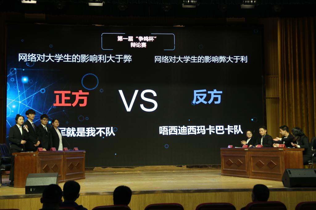 双方围绕“网络对大学生的影响利大于弊/弊大于利”这一辩题展开了一场舌尖与思维上的交锋。比赛采用4个赛程,即开篇立论、攻辩、自由辩论、总结陈词四个阶段。