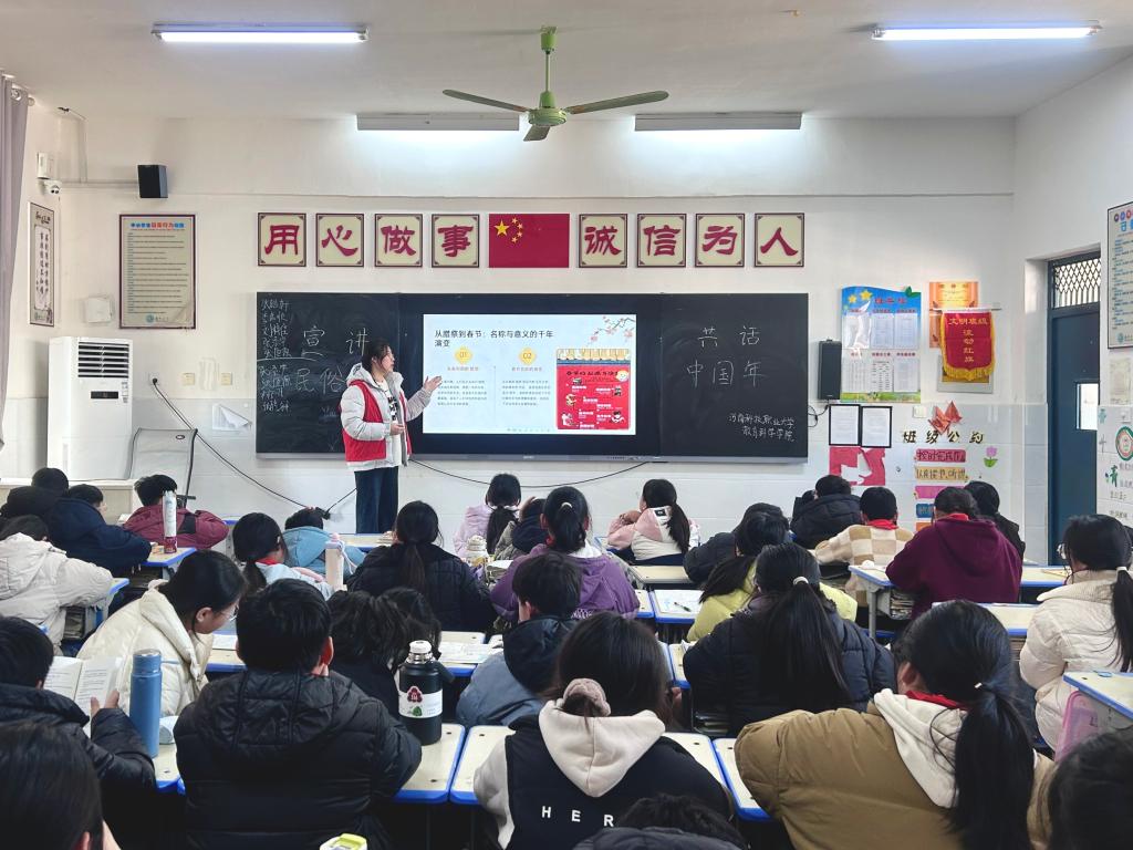 为深入推进党的创新理论在青少年群体中落地生根,引导青少年厚植家国情怀、树立远大理想,2026年1月13日至26日,河南科技职业大学教育科学学院实践团队走进周口市盛和小学开展“童声传理论,青春筑未来”寒假社会实践活动。