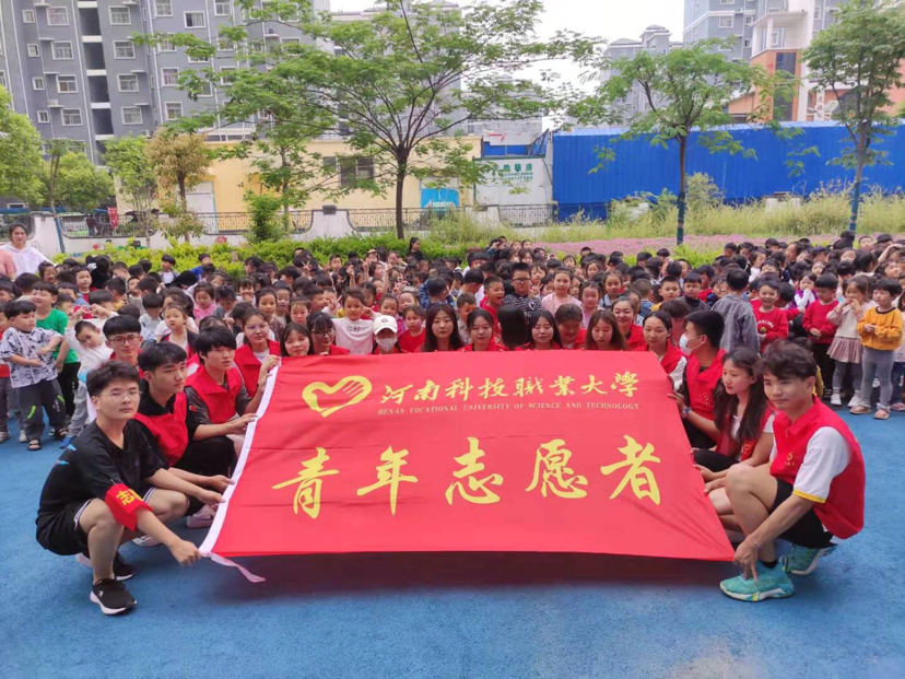 5月16日上午,河南科技职业大学组织青年志愿者在盛和家园幼儿园开展“防范化解灾害风险,牢记安全发展基础”主题志愿活动。